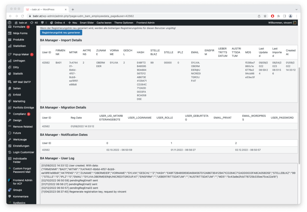 2. Administration: Registrierungs Link verwalten und senden