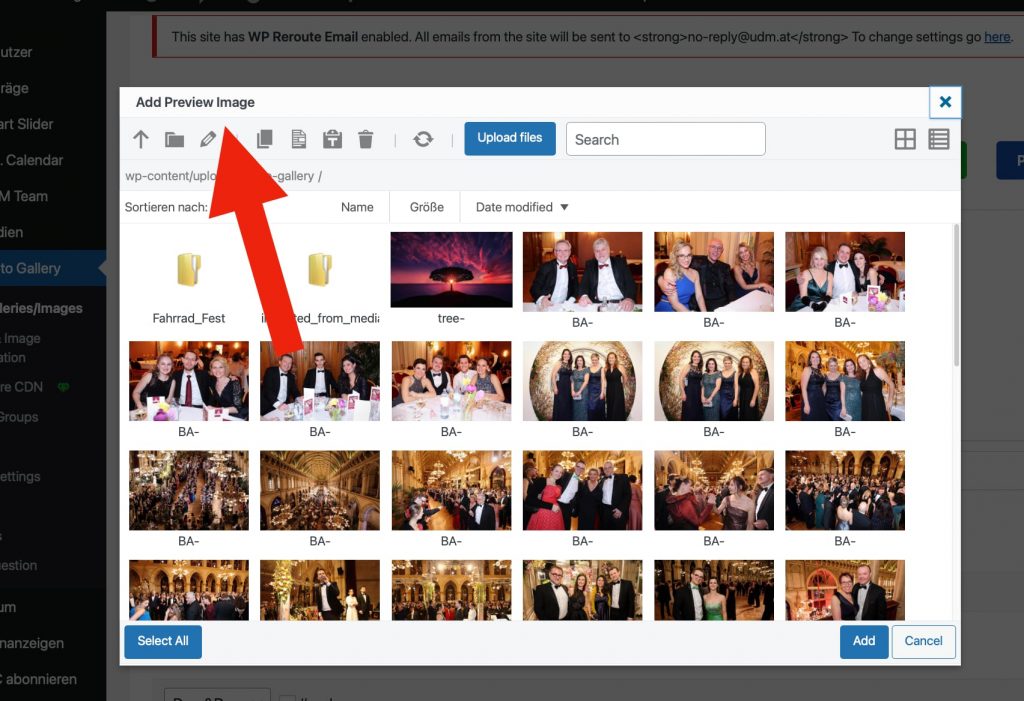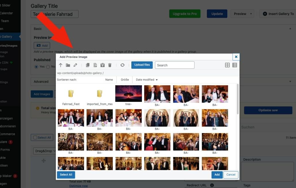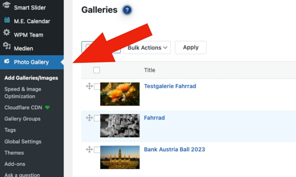 —> Die Liste der vorhandenen Fotogalerien aufrufen und die betreffende Galerie auswählen